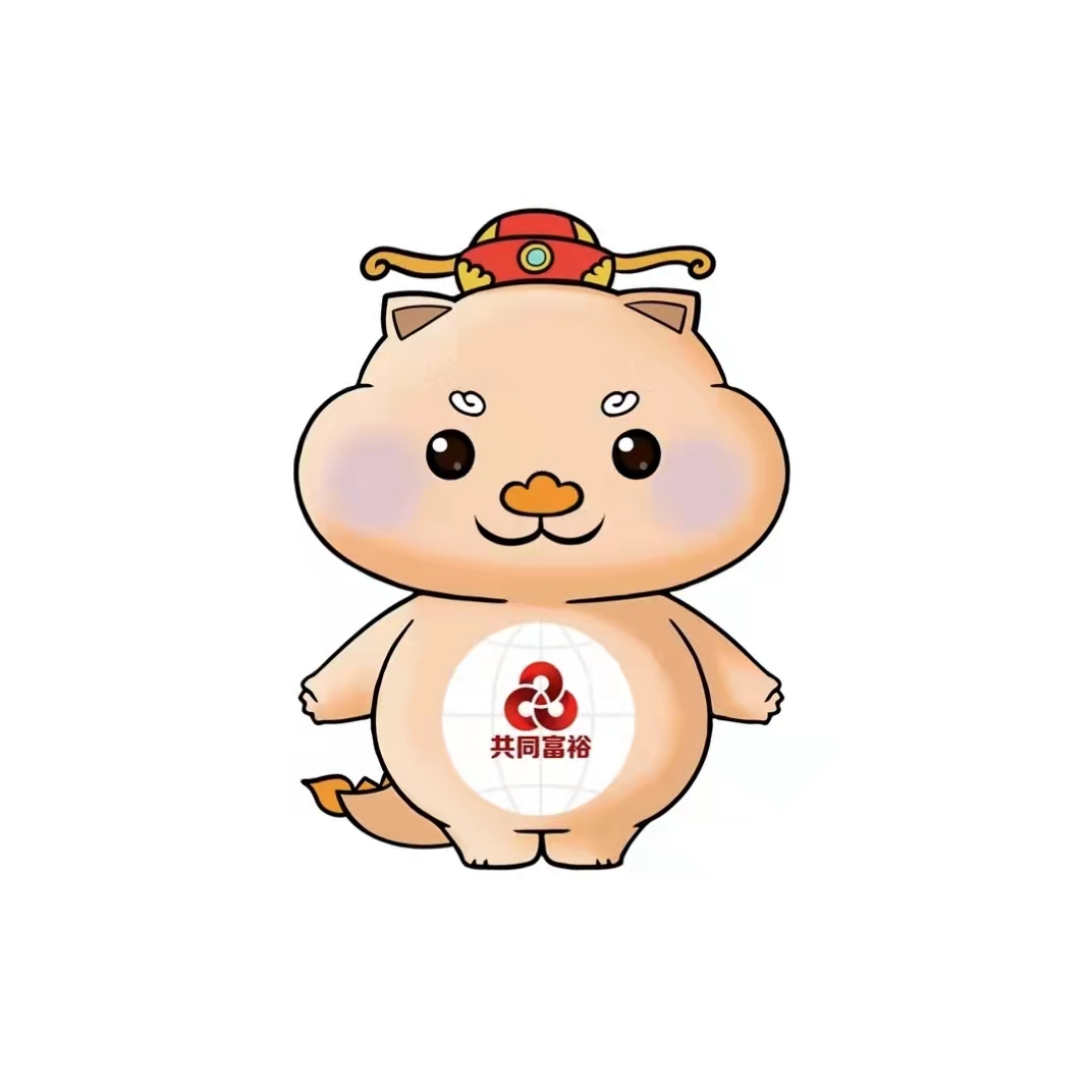 中国共同富裕发展论坛吉祥物正式发布,吉祥物以’共同富裕‘四个字命名,整体灵感源自于中国瑞兽的衍生。形象上吉祥物头戴财神帽参考中国民间信仰财神爷的经典形象,倾注了中国劳动人民的朴素情感,寄托着人民安居乐业的美好心愿。